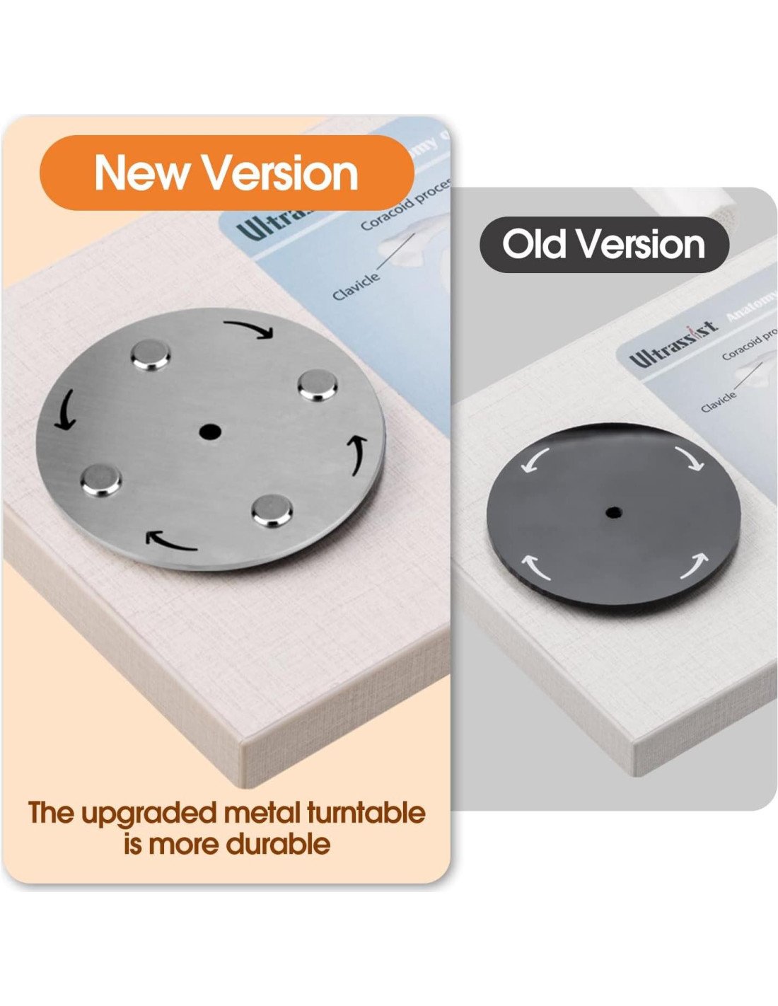 Exhibición rotatable 360 grados, soporte removible y resistente, base de madera de lujo con diagrama anatómico, una herramienta de enseñanza fantástica para exhibición en el aula y entrenamiento médico. Los productos de Ultrassist te ayudarán de manera más fácil, económica y eficiente en la educación y entrenamiento médico y incluso en una vida mejor.