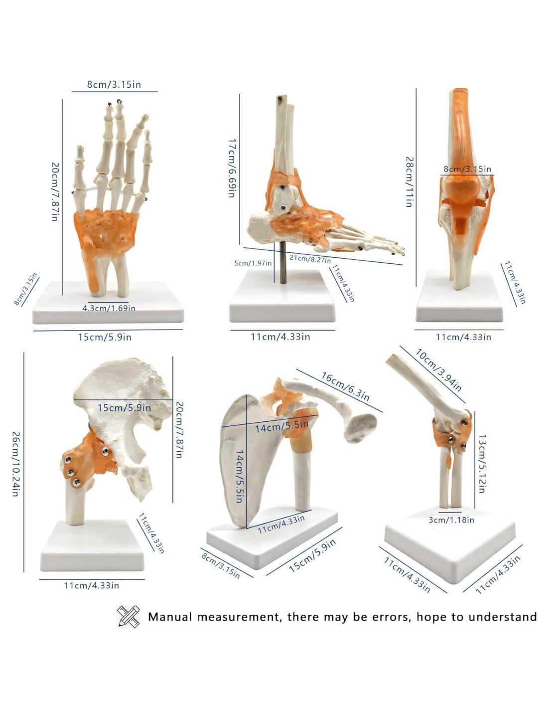 - Contenido de demostración: Los seis modelos principales de articulaciones del cuerpo humano son adecuados para la educación médica en la enseñanza de articulaciones o ligamentos o como decoración en su laboratorio, más eficiente para estudiar el cuerpo humano. Así para profundizar la comprensión de la estructura del cuerpo humano.