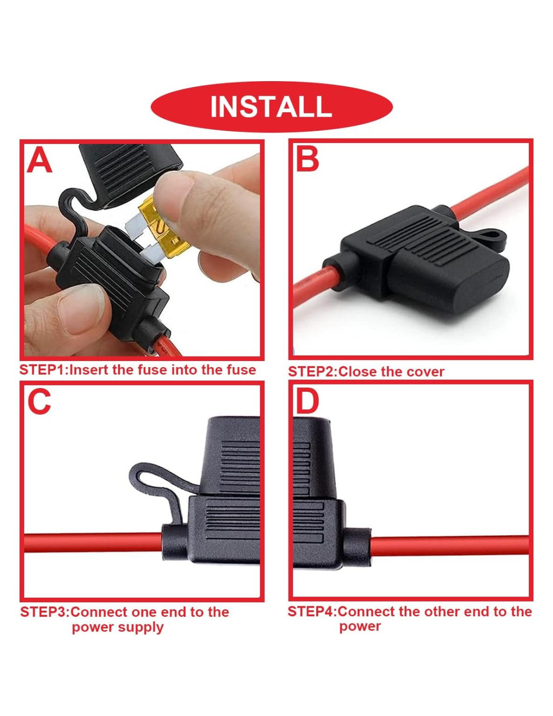 - Amplia aplicación. Kit de soporte de fusibles en línea surtido que se adapta comúnmente a fusibles de cuchilla estándar (calificación de 1Amp-30Amp), perfecto para automóvil, camión, barco, etc. Aseguran que un circuito no se sobrecargue en condiciones de operación extremas o en caso de cortocircuito.