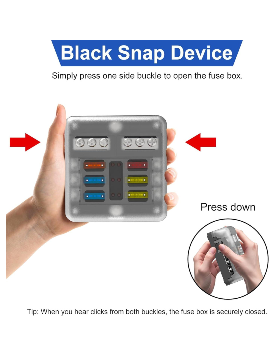 - Duradero y Confiable--La caja de fusibles de 12v está hecha de material ecológico y se caracteriza por su alta resistencia mecánica, excelente aislamiento, resistencia al calor y retardancia a la llama