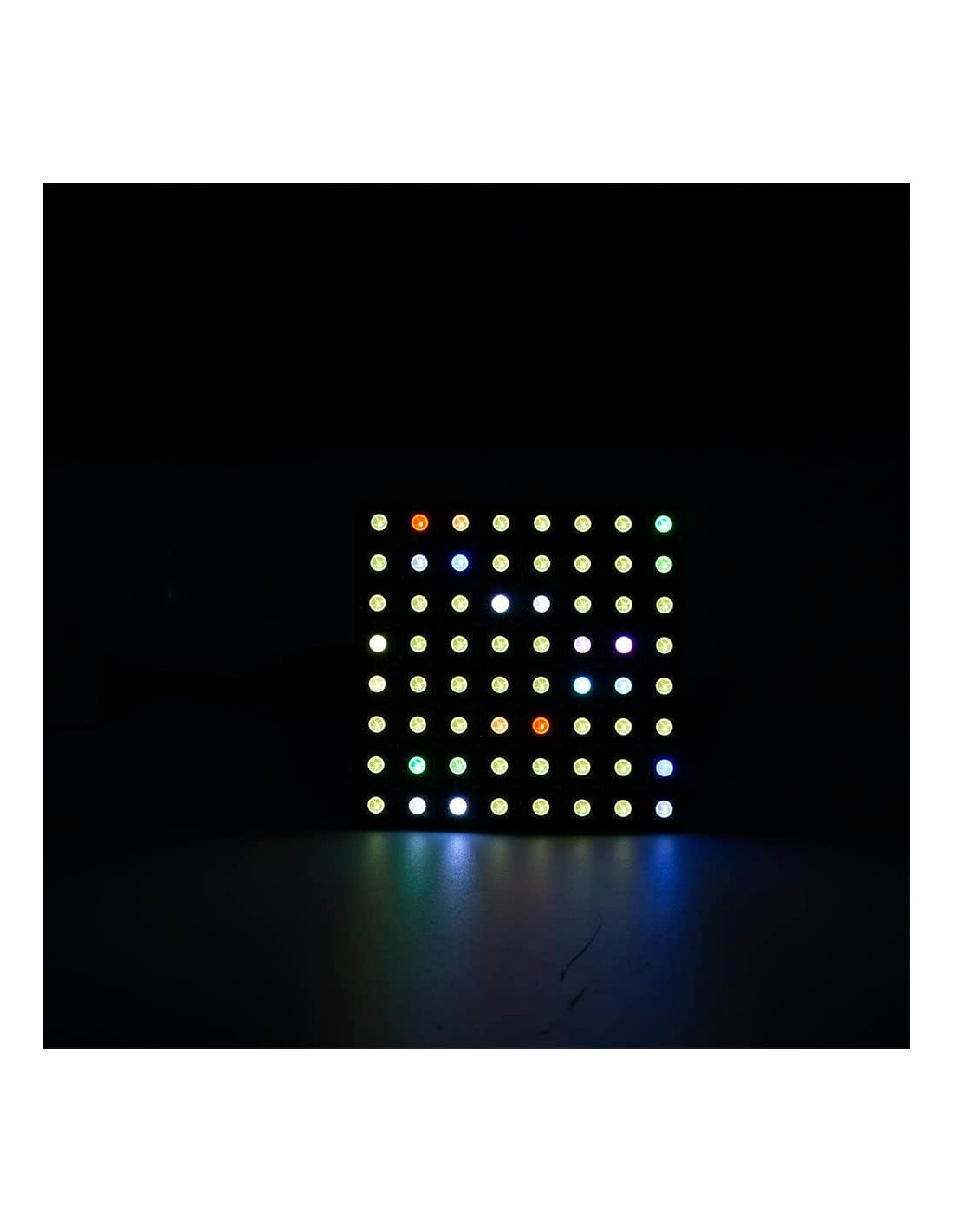 - Cada matriz LED WS2812B tiene un IC WS2811 incorporado, por lo tanto, cada efecto de iluminación LED puede ser controlado, cada LED RGB es direccionable digitalmente. Puedes configurar cada LED como desees para desplazar mensajes o dibujar pequeñas imágenes