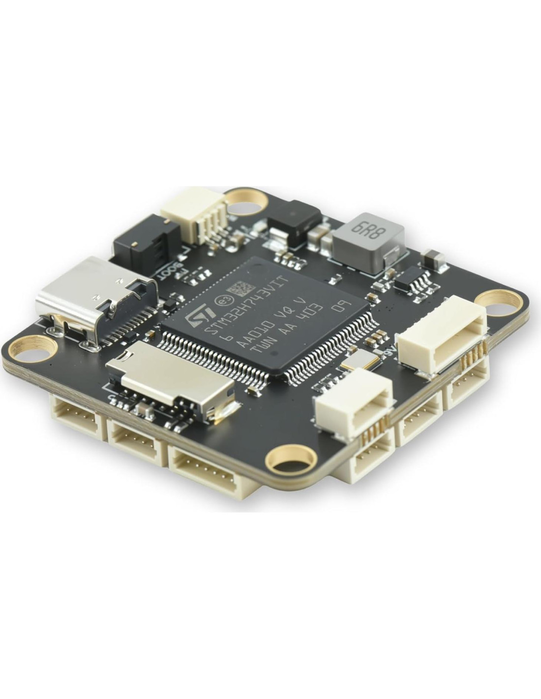 - Procesador de Alto Rendimiento: Alimentado por un procesador STM32H743VIT6 de 480MHz con 2MB Flash, asegurando un control de vuelo ultra-suave y responsivo para aplicaciones exigentes.