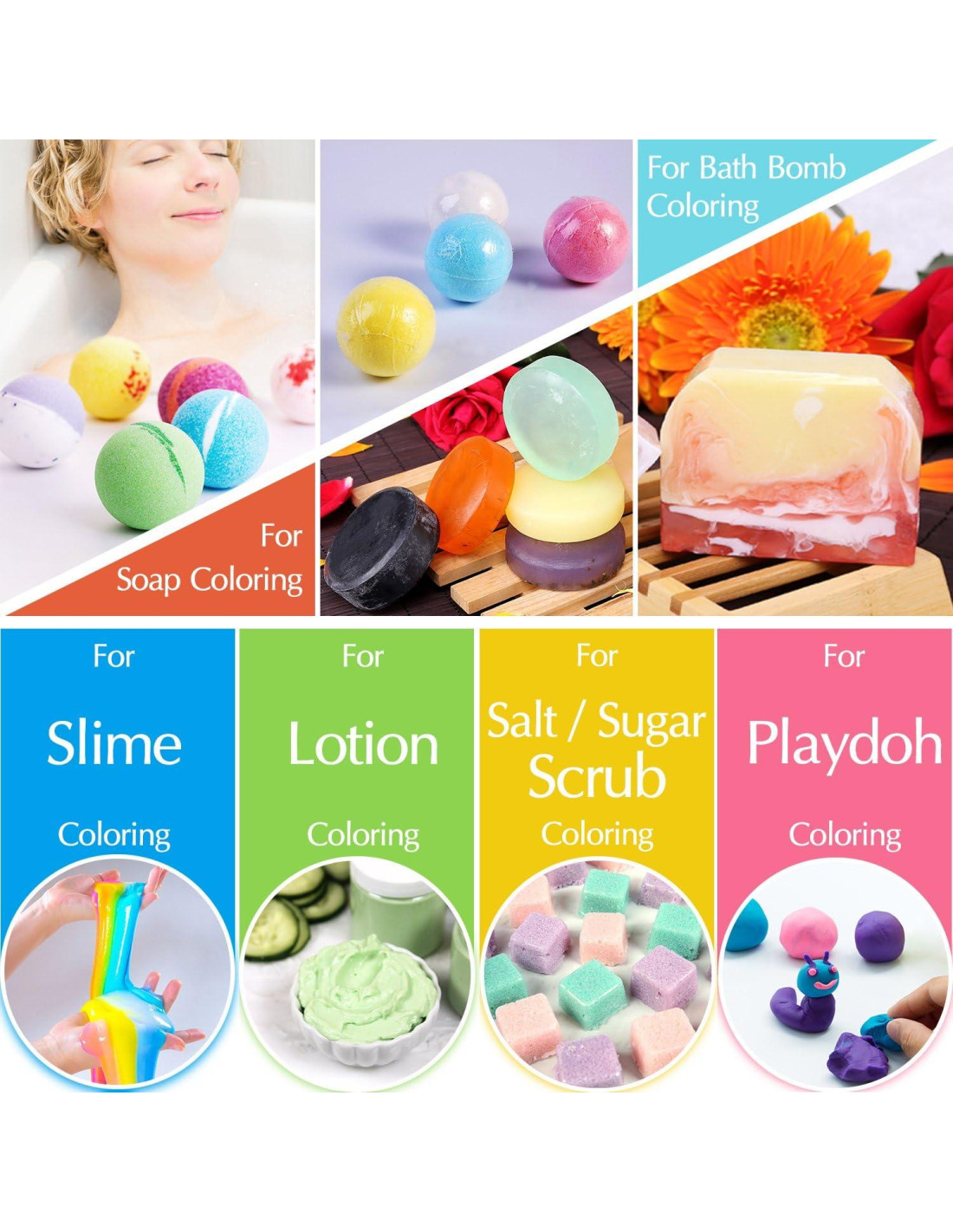 - FÁCIL DE USAR - Con la ayuda de la RECETA que proporcionamos, puedes hacer fácilmente bombas de baño bellamente brillantes. Nuestro colorante vívido soluble en agua puede crear tanto más PROFUNDIDAD como BRILLO, lo que hace que tus bombas de baño y jabones DIY se mantengan claros y atractivos.