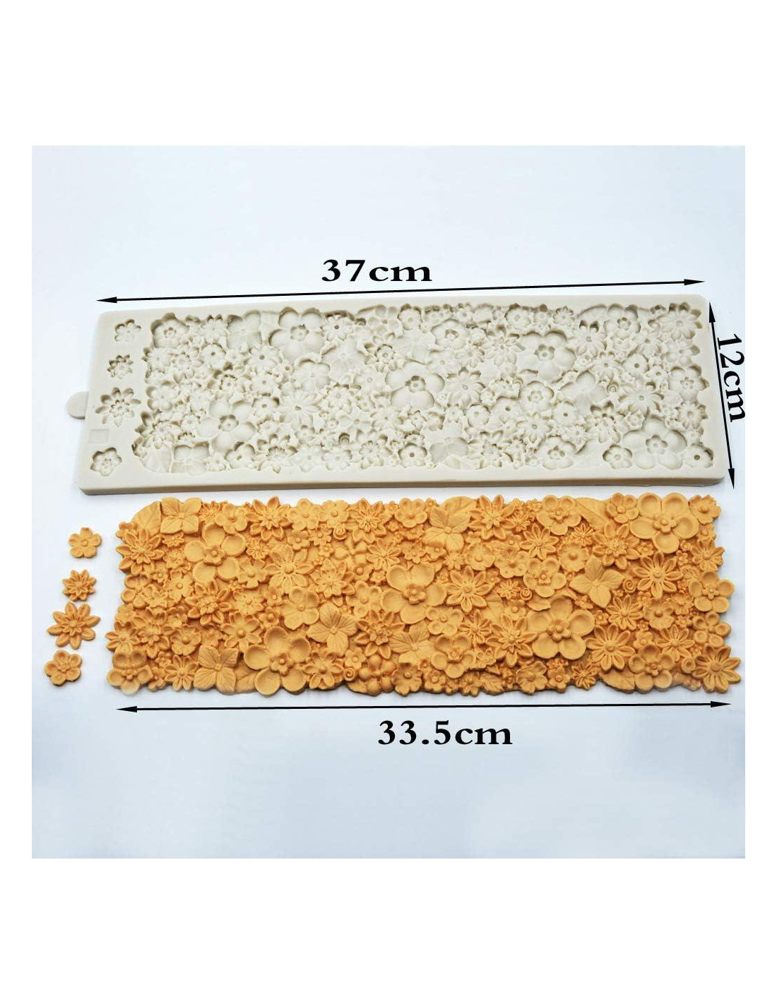 Molde de silicona en forma de flor para fondant y jabón, tapete para hornear de arcilla de resina y vela, herramienta para decorar pasteles, molde para hornear de chocolate y postres, suministros de repostería de cocina. Material: silicona de grado alimenticio, flexible, duradera y reutilizable. Crea encajes de pastel increíbles rápidamente. Fácil de usar y limpiar. Tamaño del jabón: como se muestra en las imágenes. Color: aleatorio para el envío. Rango de temperatura: -40 a +230 grados Celsius. Adecuado para hacer pasteles, pan, mousse, gelatina, comida preparada, chocolate, etc. Es bueno para fondant y pasta de goma, también para pasteles de chocolate, cupcakes y gelatina. Paquete: 1 pieza de molde para decoración de pasteles. Nota: Hay una tolerancia de 0.1-1 cm debido a la medición manual. Debido a la diferencia entre diferentes monitores, la imagen puede no reflejar el color real del artículo.