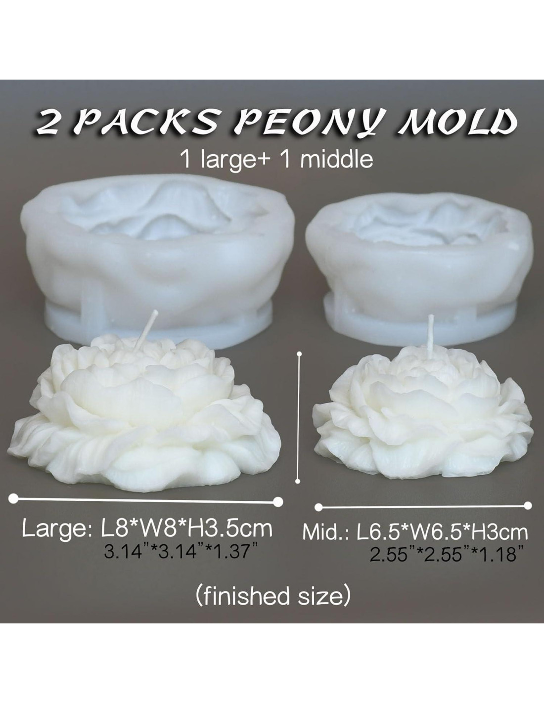 - VERSATILIDAD DE TAMAÑO DOBLE El paquete incluye 2 moldes de silicona (1 Grande + 1 Mediano) - perfectos para crear velas de peonía dimensionales. Dimensiones exactas mostradas en las imágenes del producto, ideales para arreglos de velas en capas.
