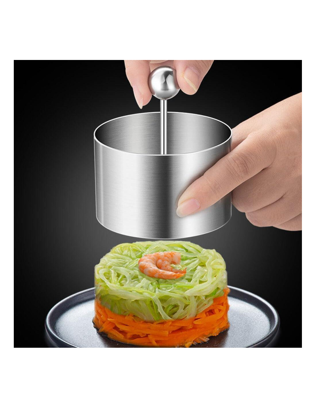 - Juego de Anillos de Postre --- Molde de Pastel Redondo Molde de Mousse de Acero Inoxidable Anillo de Pastel Incluyendo Empujador y Elevador Accesorios de Horneado Puedes usar esta herramienta para hacer sushi con tus familias en casa fácilmente, herramienta muy útil.