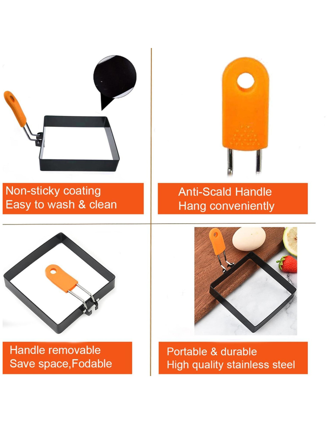 - [Diseño de recubrimiento antiadherente mejorado, uniforme, sin fugas] - El mango está hecho de goma, que se calienta fácilmente y rápido o se quema, se pliega para un almacenamiento compacto, fácil de manejar en el gancho que ahorra espacio. El anillo tiene un recubrimiento antiadherente que ayuda a evitar que se pegue. Los anillos de huevo están hechos de acero inoxidable de calidad alimentaria, así que no te preocupes por la vida útil. Fácil de usar y fácil de lavar con agua. Los anillos de huevo son planos en la sartén o plancha, ¡así que la clara no se filtra fácilmente por todas partes!