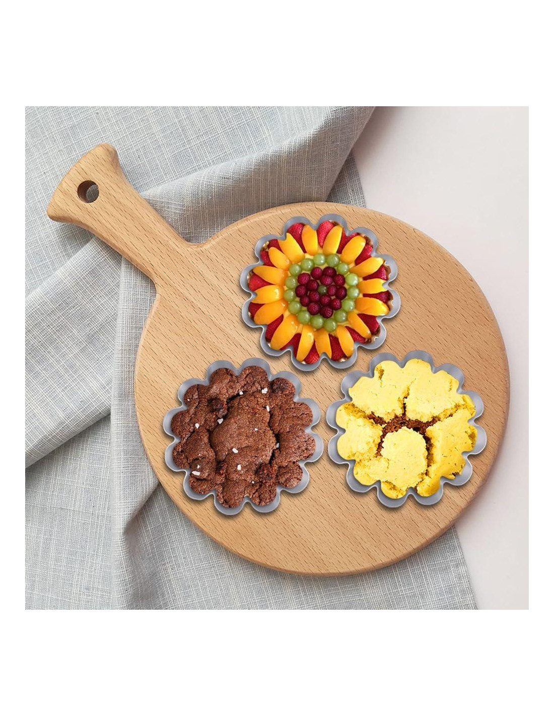 - [Tamaño del Producto] Diámetro superior: 12 cm, diámetro inferior: 8.3 cm, altura: 3.2 cm, 8 piezas por set, puedes hacer muchas tartas a la vez, los moldes de tartas de huevo son fáciles de apilar y almacenar. Resistencia a altas temperaturas hasta 230C.