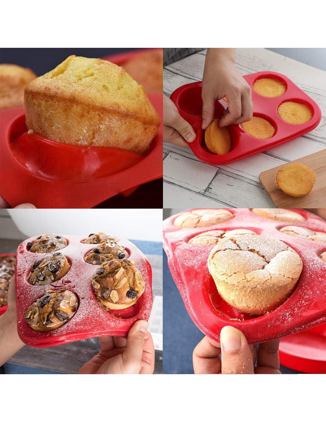 - BANDEJA DE HORNEAR DE SILICONA ANTIADHERENTE - Antiadherente, reutilizable y flexible. En comparación con los moldes duros, este molde de muffin de silicona es flexible, por lo que solo necesitas presionar con el dedo para sacar los pasteles, naturalmente antiadherente para una rápida liberación, fácil de limpiar. Di adiós a remojar y fregar utensilios de metal para hornear para siempre.
