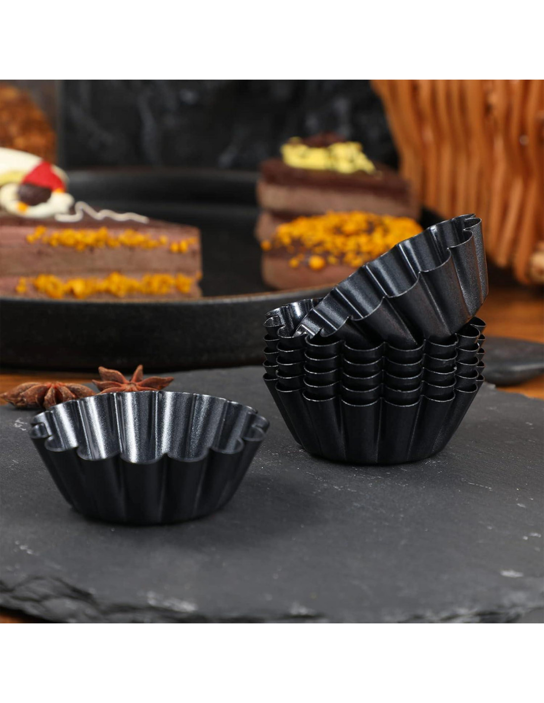 Apariencia Única Los mini moldes para tartas están hechos de acero al carbono, seguros para usar, hasta 446 grados Fahrenheit (230 grados Celsius), se pueden poner en el horno.