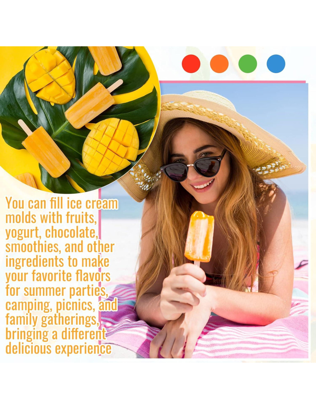 - El paquete incluye: recibirás 4 moldes de helados en 4 colores: rojo, azul, verde, naranja y 200 palitos, el molde de helado mide aproximadamente 9.02 x 5.59 x 3.54 inches (22.9 x 14.2 x 9 cm), herramientas agradables y prácticas que pueden satisfacer tus necesidades caseras, permitiendo que tú y tu familia disfruten de helados saludables en la vida diaria