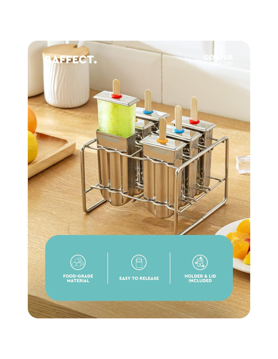 - Set completo de moldes - Hay 6 moldes de paletas separados, 6 tapas de acero inoxidable, múltiples sellos de goma y un soporte de metal incluidos en todo el set. El sello de goma para estos moldes de paletas puede mantener los palitos de lollipop en posición vertical para un agarre fácil. El soporte de acero inoxidable robusto y estable puede fijar firmemente los 6 moldes de paletas, manteniendo tu congelador limpio y ordenado.