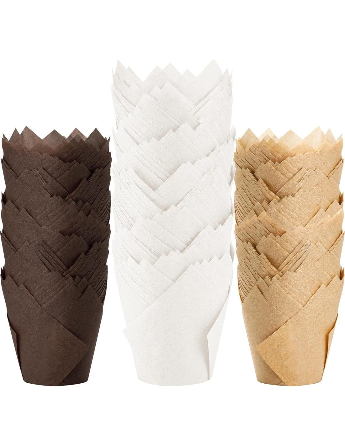 - Diseño Elegante: La forma única de tulipán de nuestros forros de cupcake para hornear añade un toque profesional, clásico y maravilloso a tus productos horneados. Impresiona a tus amigos e invitados con el aspecto elegante y atractivo de tus forros de muffin jumbo