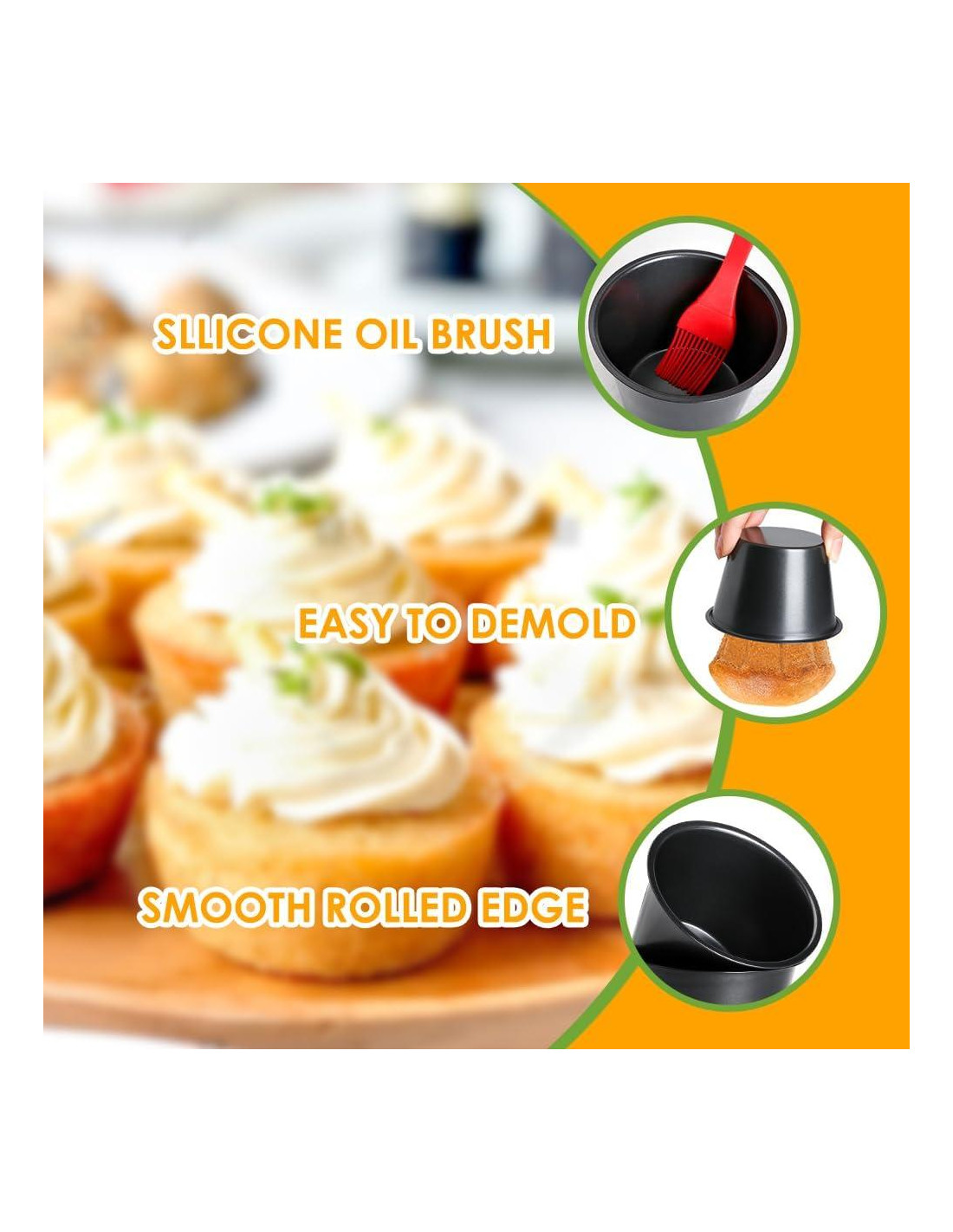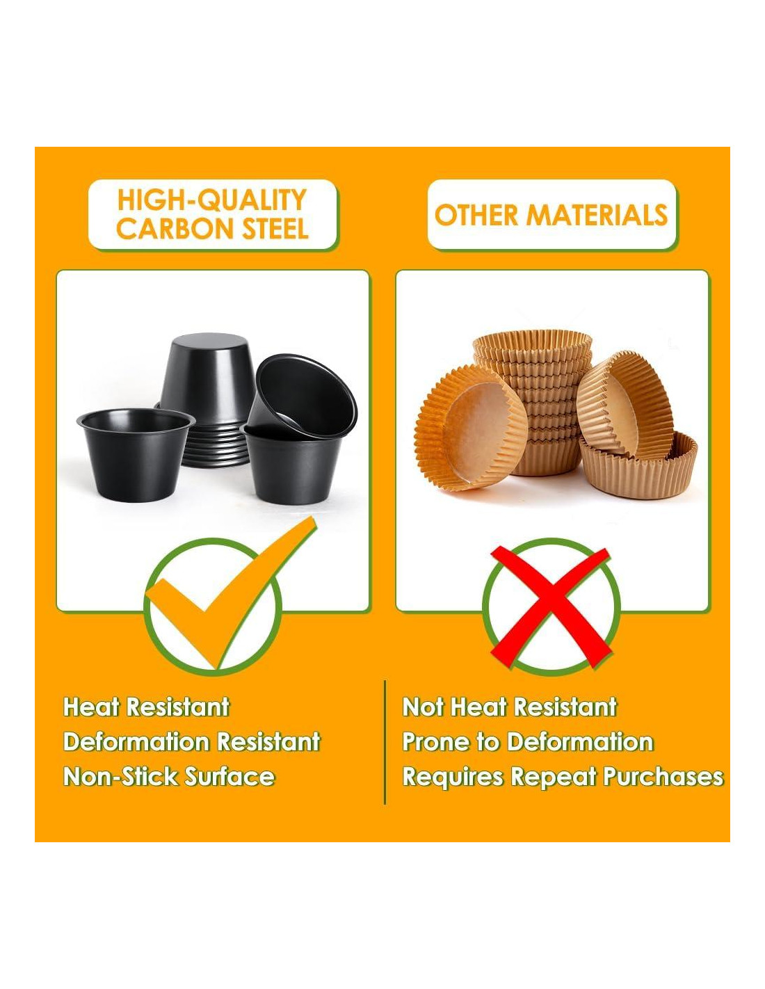 - Pro-Grade Acero al Carbono: Los moldes para popover de Quyimy de alta resistencia soportan el calor (¡aptos para freidoras de aire y hornos!) sin deformarse. Hornea popovers crujientes, postres delicados y más: ¡resultados perfectos sin esfuerzo cada vez!