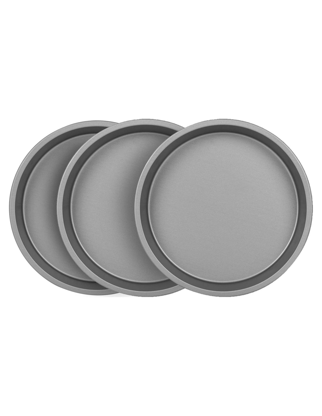 Ya sea que estés buscando hornear un pastel para una ocasión especial o simplemente para un postre después de la cena, alcanza el Juego de Tres Moldes para Pasteles Redondos Antiadherentes OvenStuff para crear tu delicioso postre. Cada molde está hecho de acero duradero que produce un calentamiento uniforme, por lo que los pasteles de capas suben de manera uniforme y se hornean hasta un acabado dorado cada vez. Los moldes están recubiertos con un acabado antiadherente DuraGlide PLUS que libera los alimentos sin esfuerzo, por lo que limpiar tus moldes es rápido y fácil. Hecho en EE. UU. con materiales estadounidenses e importados. Respaldado por una garantía limitada de 5 años. Se recomienda lavar a mano y secar con toalla. Las dimensiones internas del molde para pasteles son 9 pulgadas x 9 pulgadas x 1.3 pulgadas (22.86 cm x 22.86 cm x 3.30 cm). Las dimensiones externas son 9.5 pulgadas x 9.5 pulgadas x 1.4 pulgadas (24.13 cm x 24.13 cm x 3.56 cm).