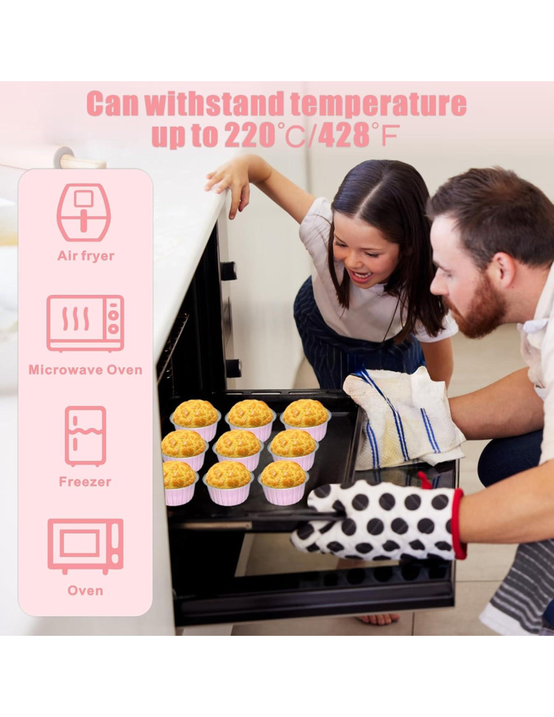 - Ahorra tiempo: Las tazas de aluminio para hornear cupcakes con tapas pueden ser reutilizables o desechables. Puedes reutilizarlas y limpiar fácilmente las tazas, o tirar estos recipientes en el contenedor de reciclaje o en la basura después de usarlos, ahorrando tu tiempo de limpieza
