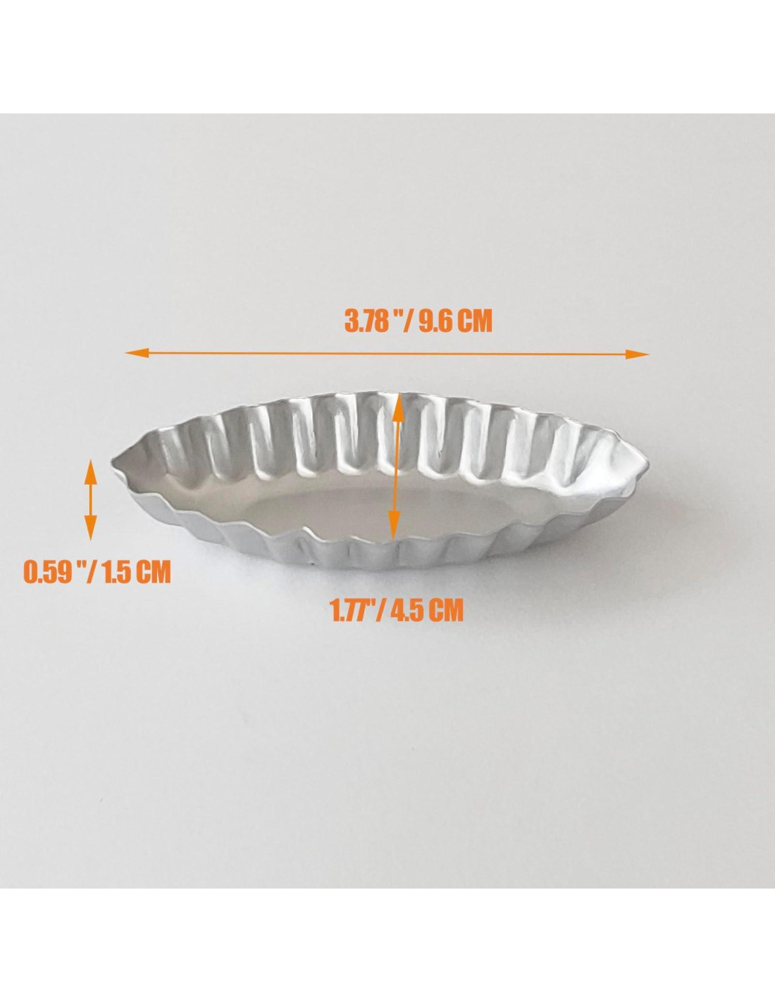 Moldes para tartas de huevo con lados acanalados, paquete de 10 moldes para tartas mini en forma de barco, aunque no tienen recubrimiento antiadherente, la concha se puede quitar fácilmente del molde y es fácil de limpiar. La taza de hornear de aleación de aluminio es resistente y se calienta de manera uniforme. Son realmente adorables para postres individuales, tartas DIY, pasteles, tartaletas, galletas, frutas, pudín, chocolate, etc. ¡Impresiona a la gente en la próxima reunión con este molde! Material: aleación de aluminio de buena calidad Tamaño: 3.78x 1.77x 0.59" / 9.6x 4.5x 1.5cm Color: plata Paquete incluido: 10 x mini molde para pastel acanalado Capacidad: 1.01OZ / 30ml por pieza Peso neto: 0.27OZ / 7.5g por pieza Nota 1. Solo lavar a mano. No poner en el lavavajillas. 2. Usar una esponja o un paño suave para limpiar las tazas. No usar objetos afilados. 3. Puedes aplicar una capa de aceite en la superficie antes de usar para un mejor desmoldeo. 4. Secar antes de almacenar. 5. Verificar el tamaño si es adecuado para ti antes de ordenar.