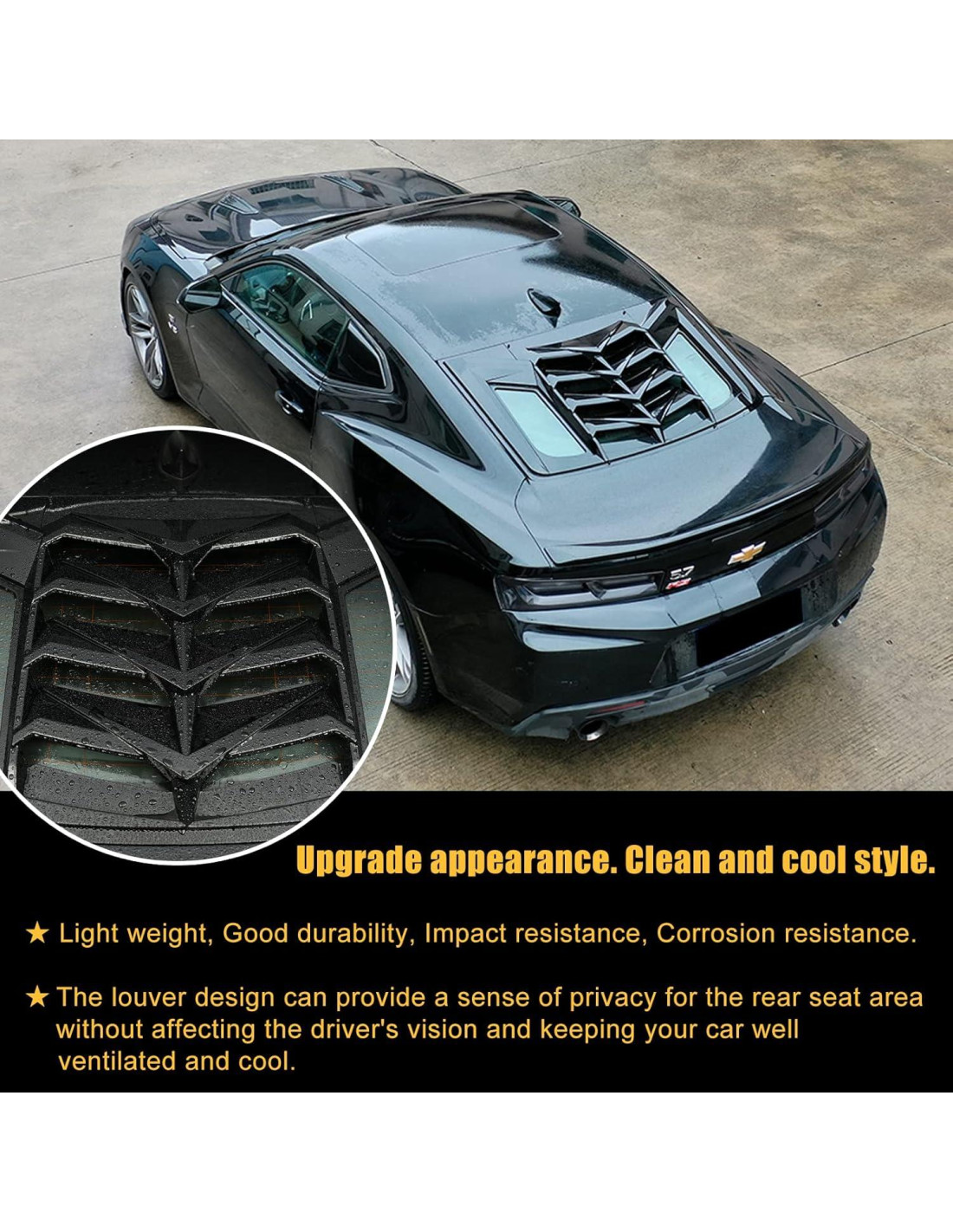 - Ajuste Perfecto: Nuestro obturador de ventana trasera está diseñado utilizando tecnología de escaneo 3D precisa y fabricado en base al modelo de datos del automóvil original. Se ajusta con precisión al borde de su Chevy Camaro 2016-2022, asegurando un aspecto sin costuras.