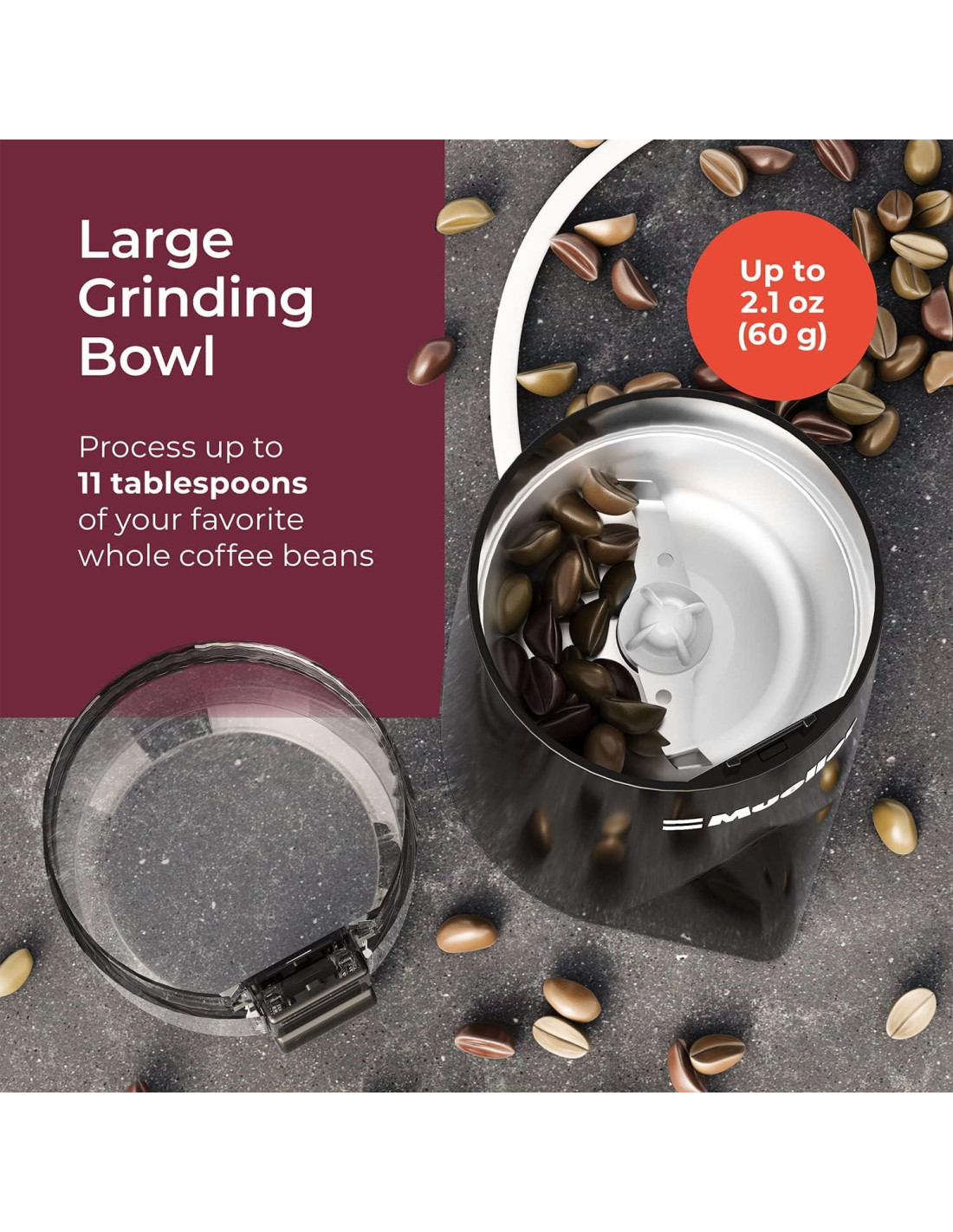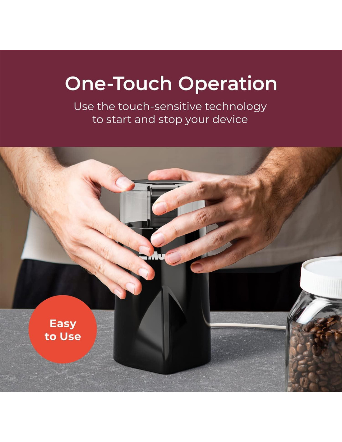 - Potente y Eficiente - Las cuchillas de larga duración hechas de acero inoxidable fuerte y duradero molerán fácilmente cualquier tipo de café que desees, desde grueso hasta fino, de manera rápida y eficiente con un mínimo ruido de molienda.