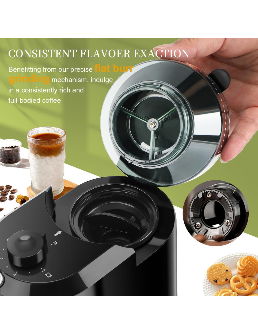 - [Control Bajo Demanda, Perfecto para 2-12 Tazas]: Este molinillo de café cuenta con control de molido bajo demanda, permitiéndote elegir la cantidad de café a moler según sea necesario, desde tan solo 2 tazas hasta 12 tazas, personalizando la cantidad perfecta de café molido para ti.