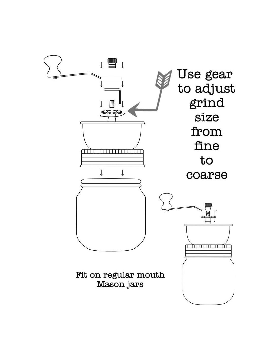 - Este molinillo de muelas ajustable de manivela manual es perfecto para cualquiera que ame el café y/o los tarros Mason. Tarro no incluido.