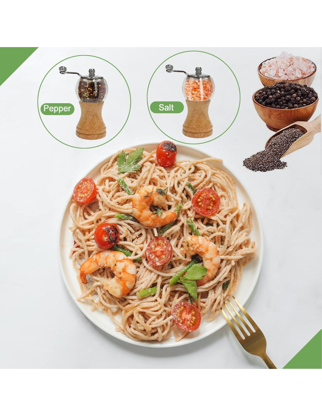 - Diseño Elegante y Compacto: El juego de molinillos de pimienta de madera presenta un diseño clásico y elegante que complementa cualquier decoración de cocina. El tamaño compacto facilita su almacenamiento en la cocina y su uso.