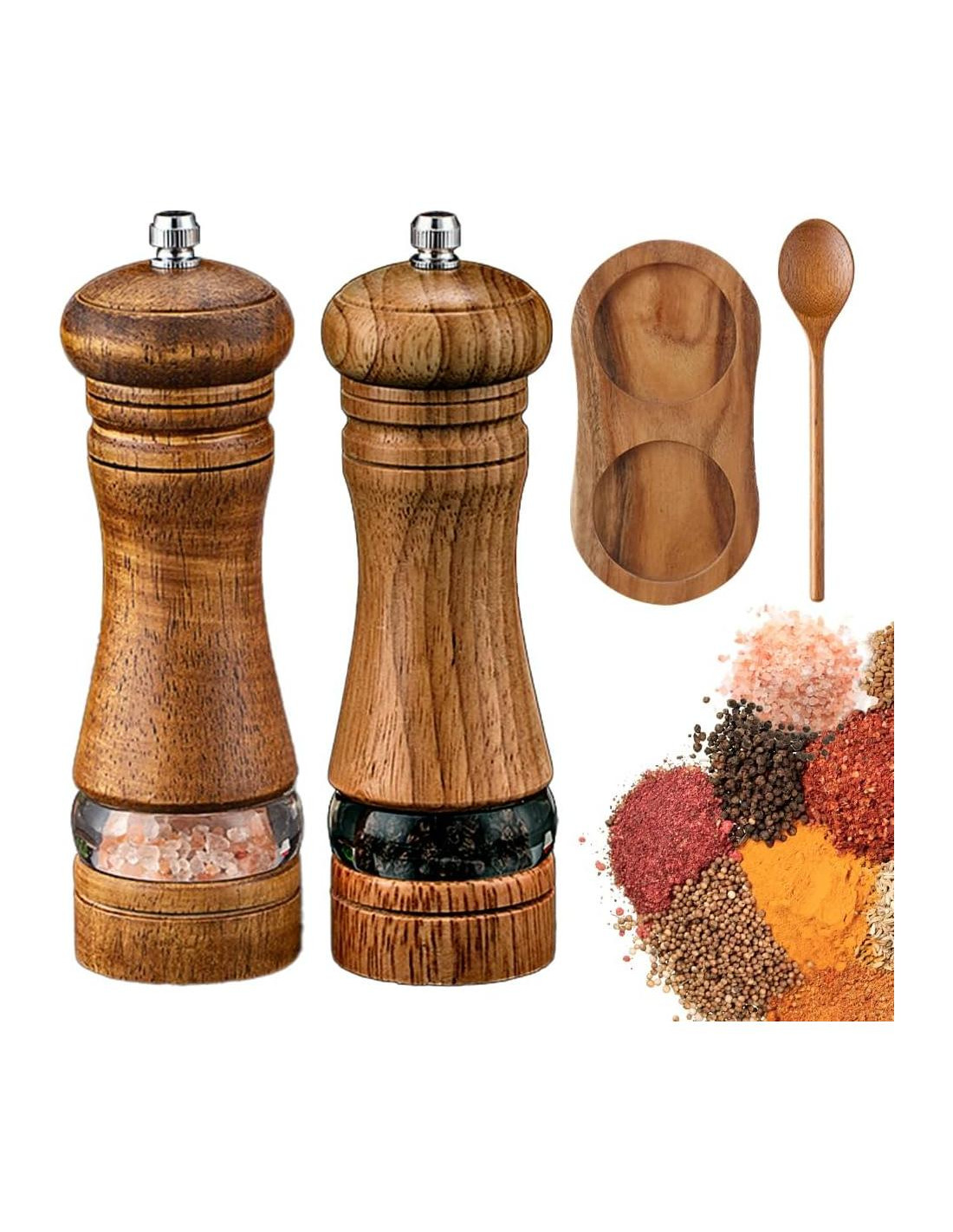 - Mejora la Estética de la Cocina: Simple pero elegante, pequeño pero funcional, juego de molinillos de madera clásico con bandeja, manteniendo limpio y ordenado, mejorando la estética de tu cocina.
