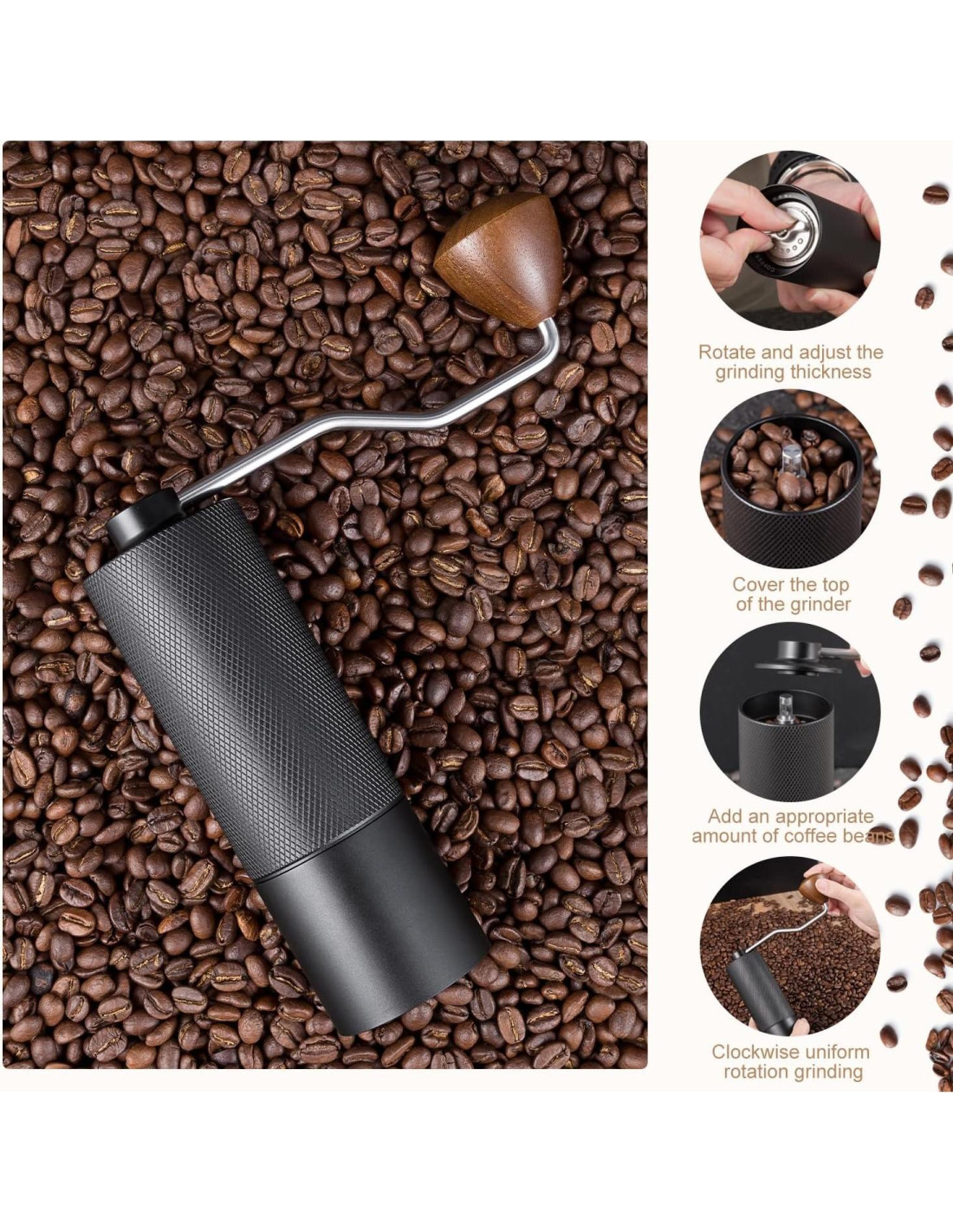 - MOLINO DE CAFÉ MANUAL: Molino de café manual con capacidad de 25 gramos, molino de café cónico de acero inoxidable, molino de café para casa, oficina, camping, senderismo