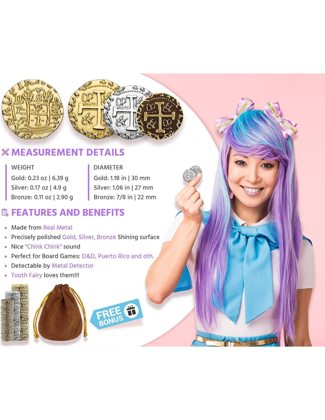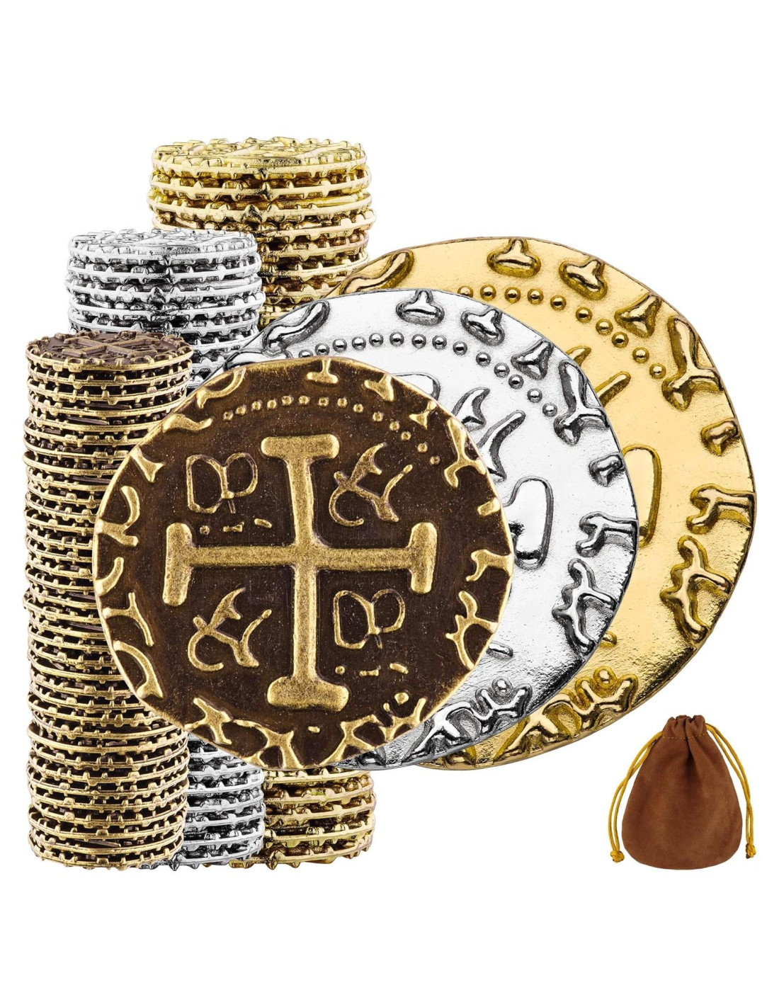 - CONJUNTO DE MONEDAS PIRATA METÁLICAS: Incluye 34 monedas de oro XLarge (1.18 inches / 30mm), 34 monedas de plata grandes (1.06 inches / 27mm) y 34 monedas de bronce medianas (7/8 inches / 22mm), junto con una fantástica bolsa de monedas pirata, ¡perfecta para dar vida a tus aventuras piratas!