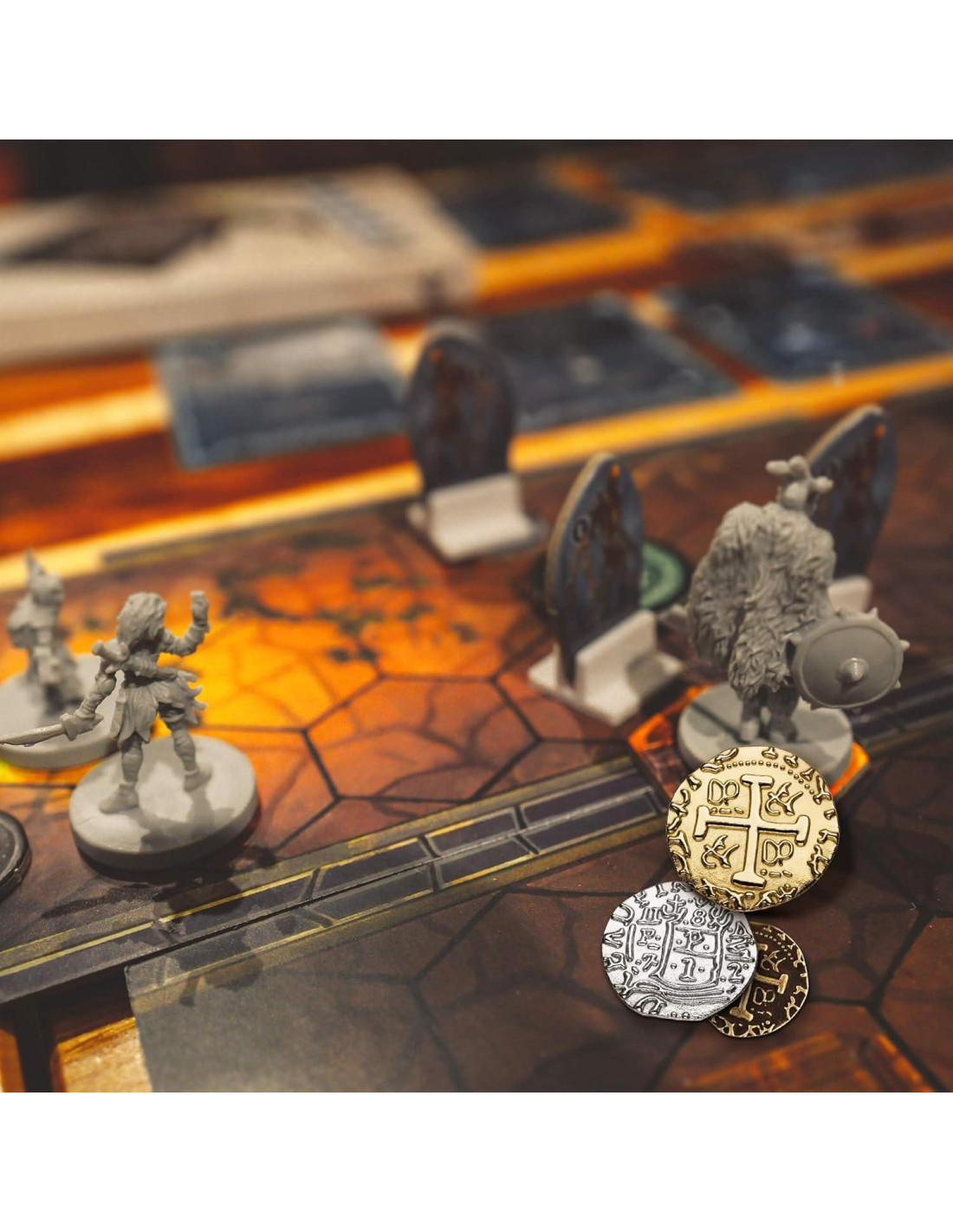 - GENIAL PARA JUEGOS: Ya sea que estés jugando Dungeons and Dragons, Red Dragon Inn, Puerto Rico, Gloomhaven o Age of Empires, estas monedas metálicas son un excelente toque realista para todos tus juegos de mesa favoritos.