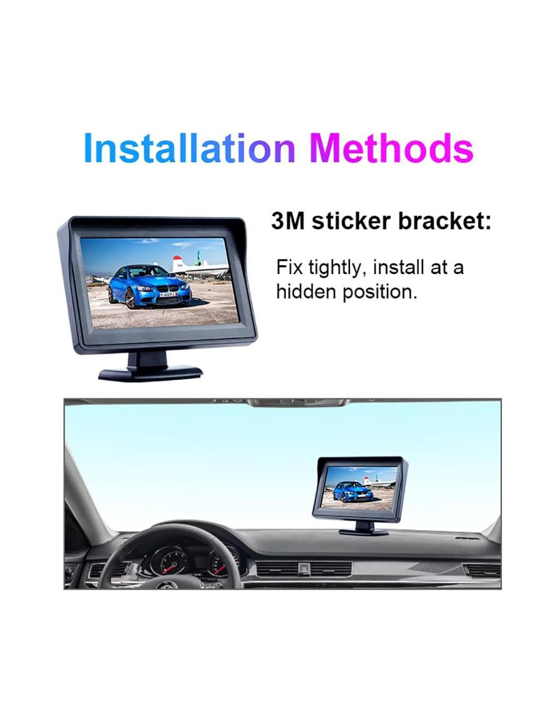 - Monitor de coche con parasol, se puede ver más claro incluso en días soleados, un soporte que tiene un adhesivo en la parte inferior para pegarlo en el coche, ajustable a 180 grados, área visible: 72 x 53 mm