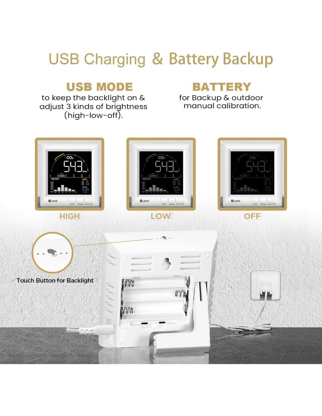 - MONITOR DE CALIDAD DEL AIRE INTERIOR - Detecta el aumento y la disminución en el nivel de dióxido de carbono, ¡perfecto para cualquiera que quiera monitorear la calidad del aire! El CO2 elevado puede causar síntomas como dolores de cabeza, somnolencia, alergias y dificultad para concentrarse, para mantener un ojo en la calidad del aire en casa o en el trabajo.