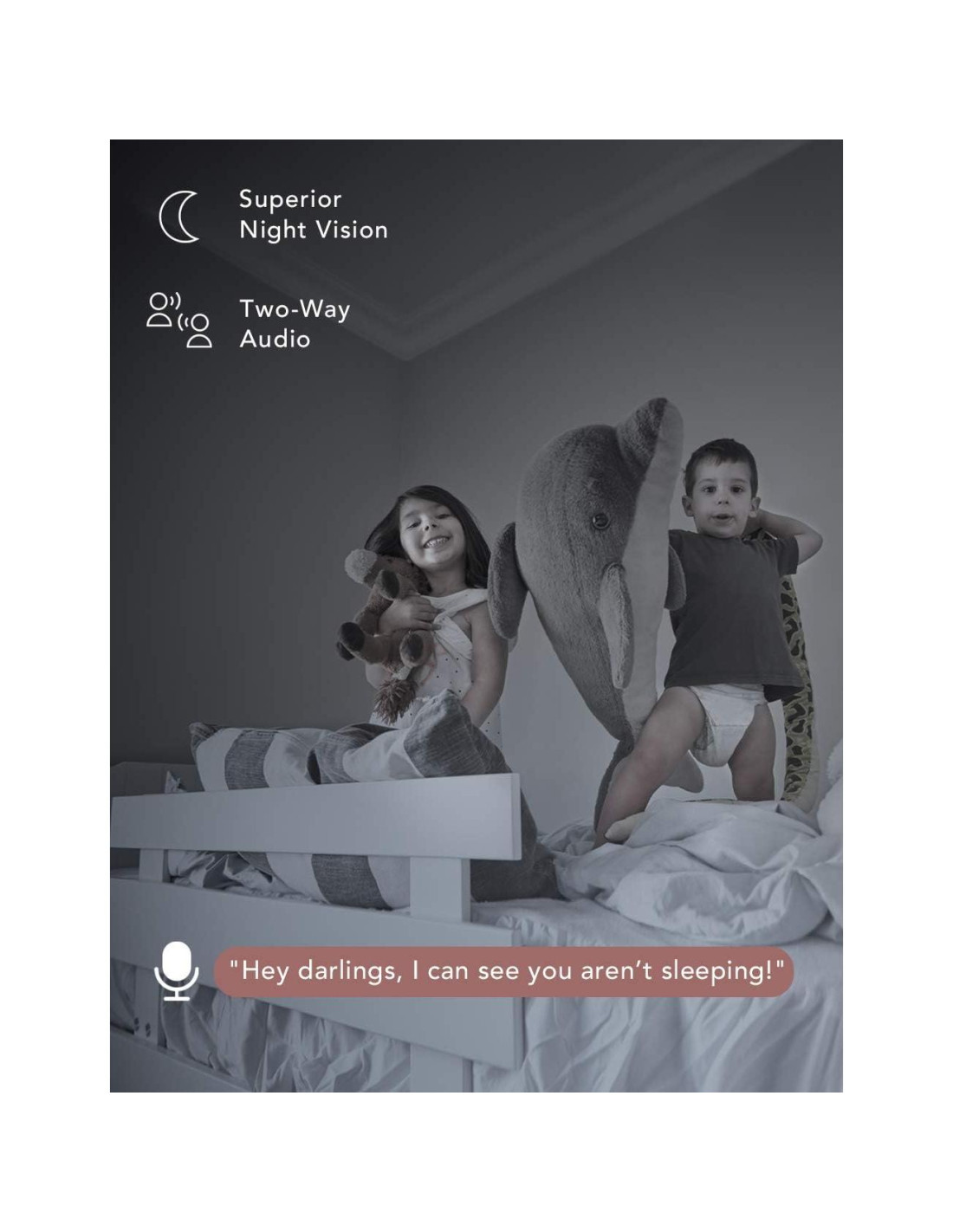 - Visión Nocturna de Alta Definición: El Monitor de Bebé captura imágenes claras en 1080P HD día y noche con dos LEDs infrarrojos de 940nm para visión nocturna de hasta 32 pies (10 m). Luz de estado opcional discreta sin perturbar el sueño del bebé