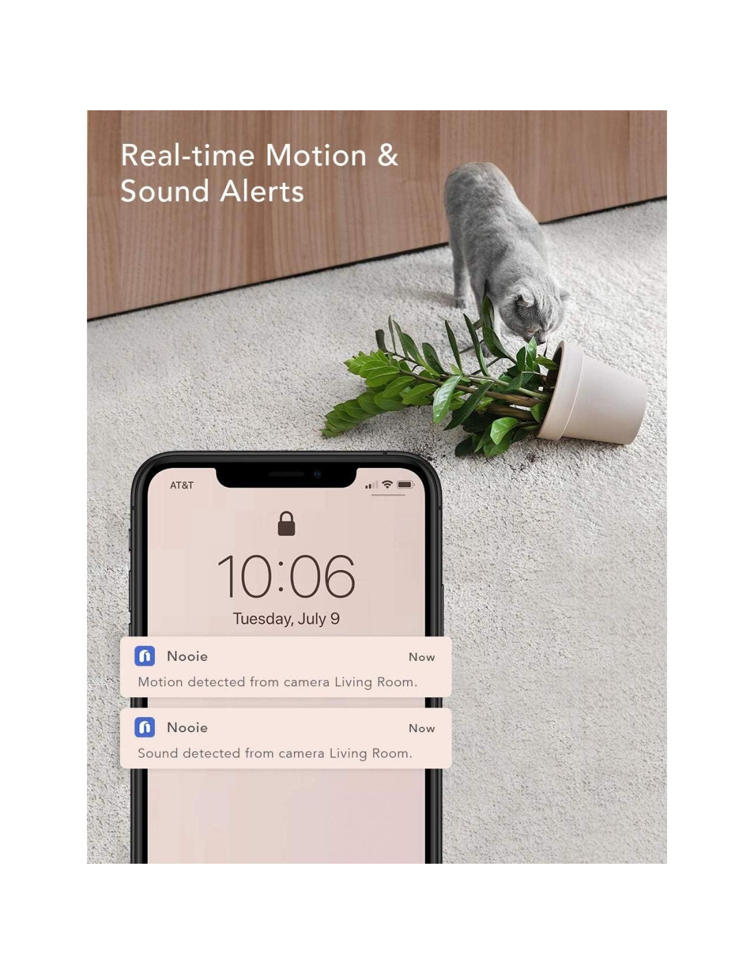 - Seguimiento de Movimiento AI con Ángulo Amplio de 360: El Monitor de Bebé Nooie detecta y sigue automáticamente los movimientos, asegurando una cobertura completa con un campo de visión de 101 y rotación horizontal de 355. Controla a través de la app para un monitoreo sin interrupciones