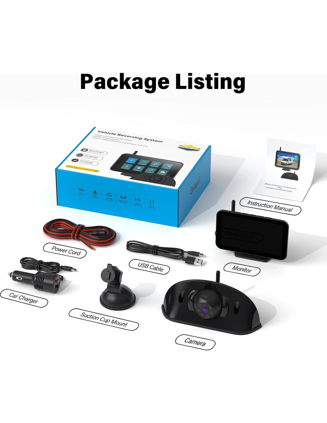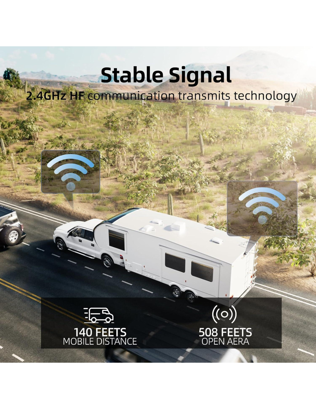 - Características especiales: con monitor DVR de 5 pulgadas, instalación fácil, señal estable: comunicación HF de 2.4GHz transmite, HD 1080P, visión nocturna IR, impermeable IP69K, para RVs, camiones, pickups, autobuses, remolques, caravanas