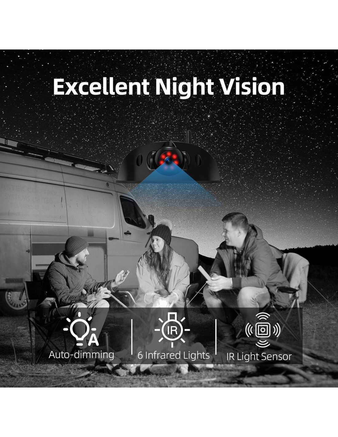 - Instalación Fácil y Rápida: Compatible con RVs pre-cableados Furrion u otros modelos de montaje pre-cableados, esta cámara de respaldo inalámbrica permite conectar y usar sin perforar. Si su vehículo no está pre-cableado, asegure la cámara con tornillos y conéctela a la fuente de energía de las luces de reversa/conducción/luces traseras