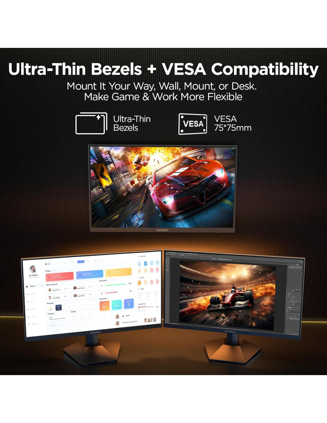 - MÚLTIPLES PUERTOS: El monitor de juegos KOORUI de 27 pulgadas proporciona interfaces de video a través de HDMI y Display ports. Puedes conectar el monitor sin bordes a Xbox, PC y laptops, transmitiendo imágenes de alta calidad, cualquier cambio entre oficina y entretenimiento.
