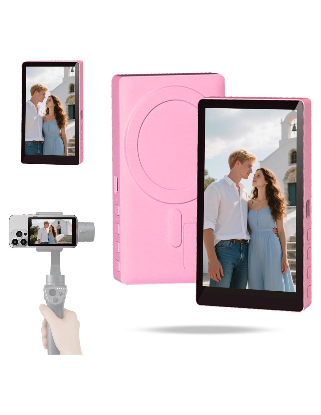 Pantalla de Monitor Selfie para Teléfono, Monitor de Cámara Trasera Magnética con 4K 30fps, Control Remoto Bluetooth, Pantalla Selfie Portátil para iPhone y Android