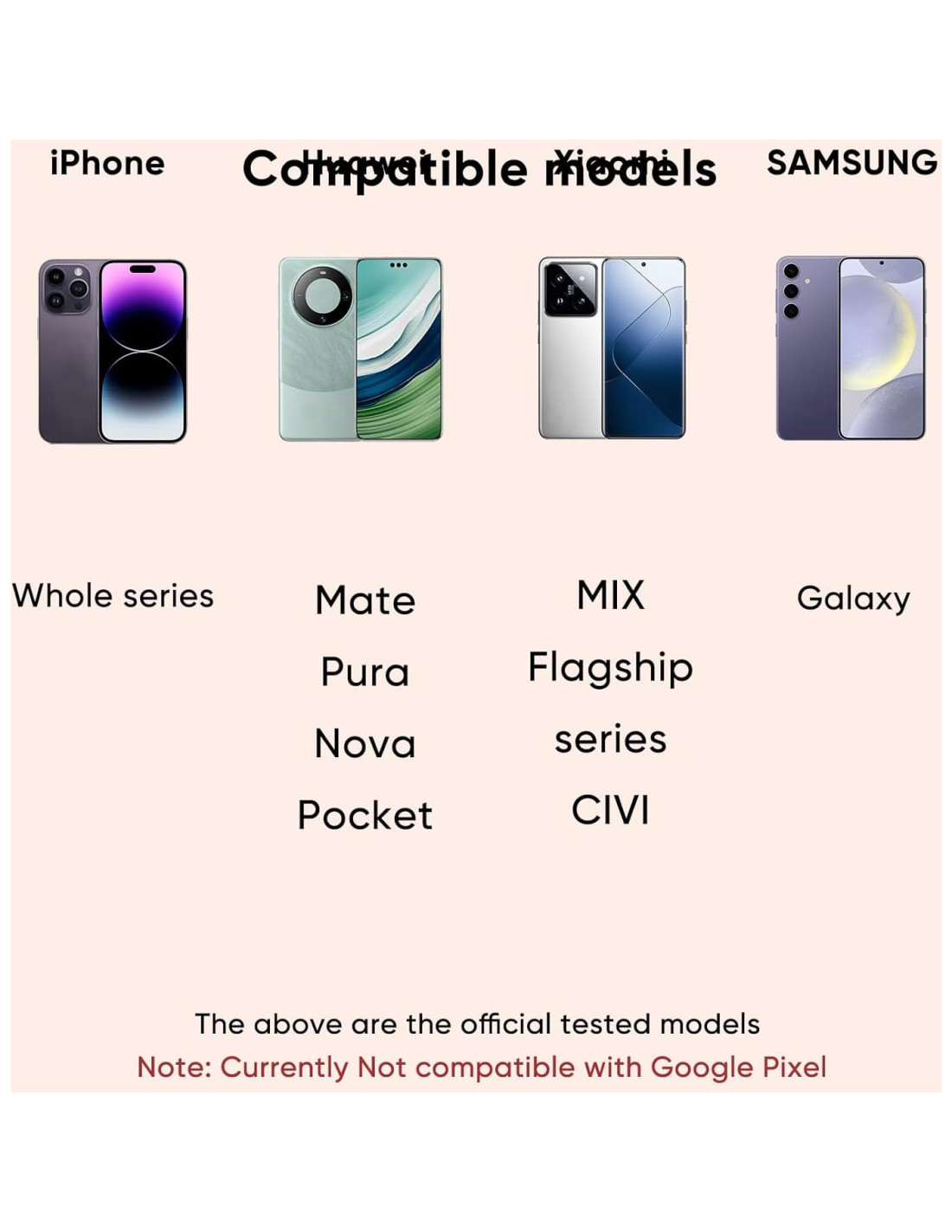 - Fuerte Sujeción Magnética y Compatibilidad Universal El potente diseño magnético hace que sea rápido y seguro de adjuntar. Directamente compatible con la serie iPhone 12-16 (parte trasera magnética). Para iPhone 11 y anteriores, simplemente use la hoja magnética incluida. El fuerte imán asegura un rendimiento estable y sin deslizamientos durante las grabaciones.