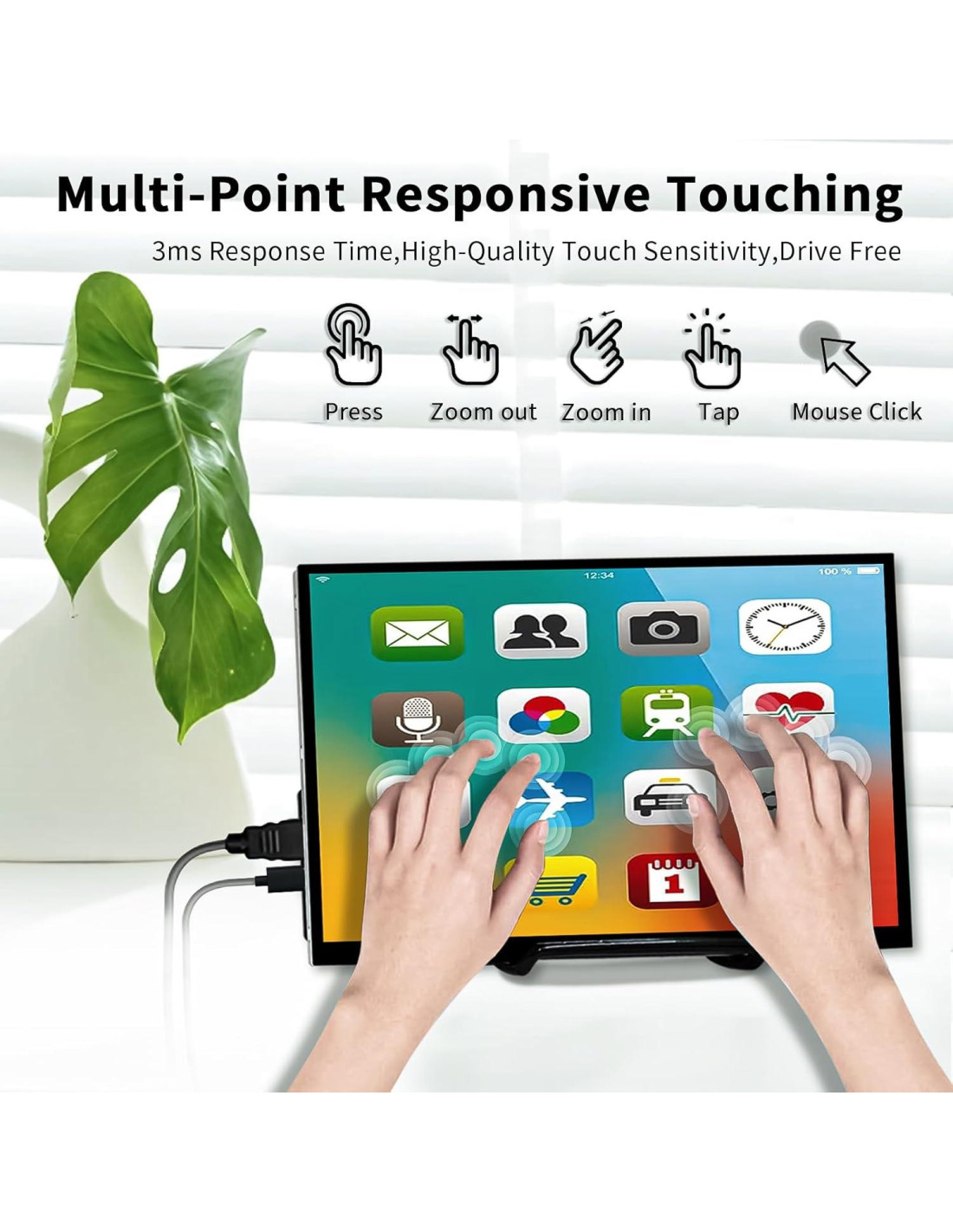 - [Monitor Táctil de Múltiples Puntos] Pantalla táctil, soporta función de toque de 5 puntos, precisa y suave, permitiéndole deslizar, desplazarse, seleccionar, un cursor en aproximadamente 3-5 ms. Cuando conecta el cable USB a su dispositivo, puede usar la función táctil para aumentar su eficiencia laboral. La superficie táctil de este pequeño monitor HDMI es bastante receptiva, precisa y suave, no necesita calibración manual.