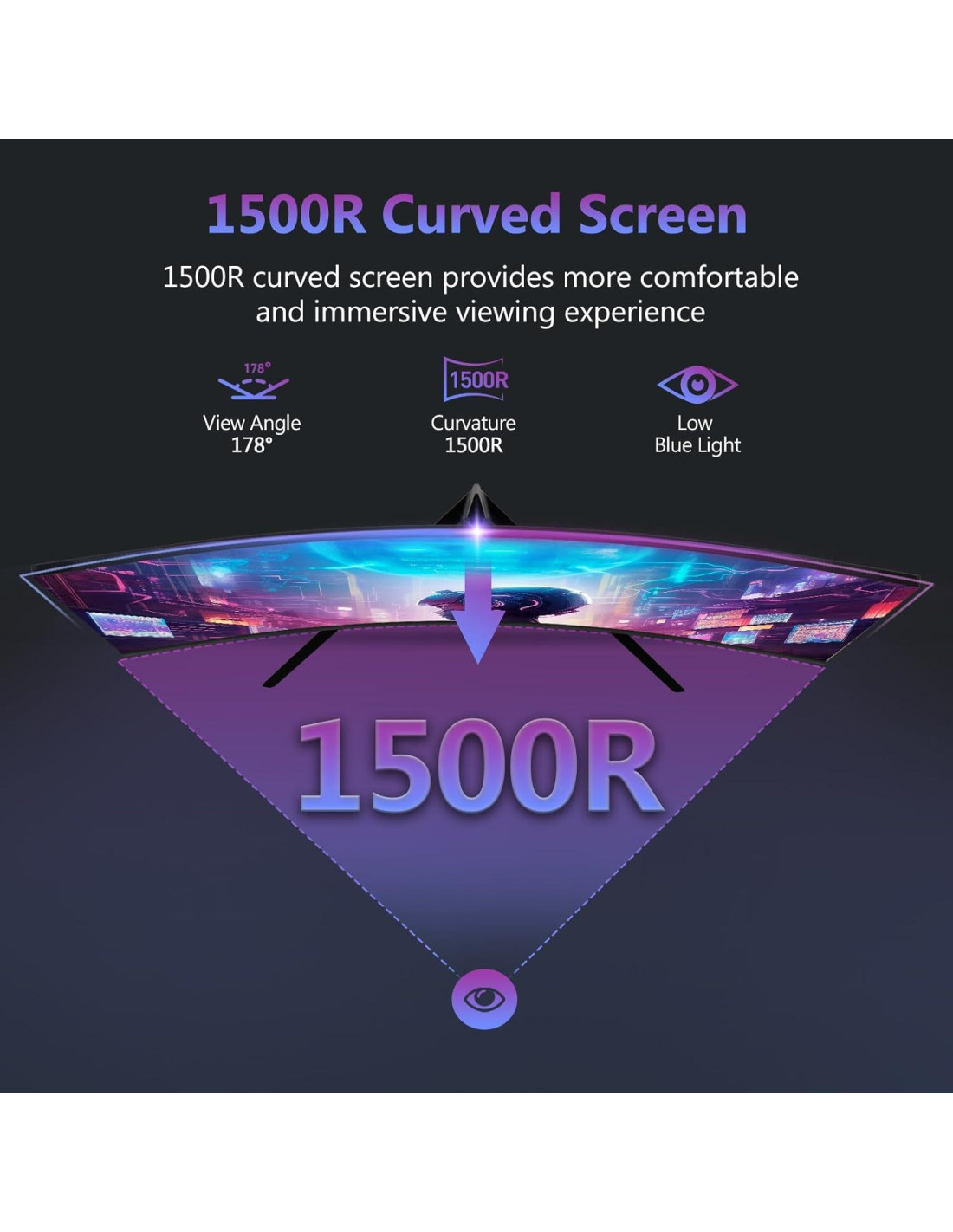 - Monitor Curvo para Juegos 1500R: El monitor curvo 1500R demostró agregar un toque inmersivo mientras juegas o miras películas, ayudando a llenar nuestra visión periférica, ampliando el campo de visión en mayor medida. El monitor curvo proporciona la máxima inmersión, comprometiendo completamente tu vida en todos los aspectos.