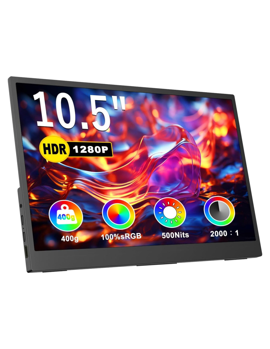 - [Pantalla de alta definición con una maravillosa relación de aspecto 3:2] La resolución es 1920 X 1280, lo que puede manejar full HD, permitiéndote disfrutar de la reproducción de video colorido así como de juegos. El monitor móvil puede ser utilizado como un submonitor. La pantalla 3:2 es más grande que una pantalla ancha regular de 10.5 pulgadas. También es más larga verticalmente, por lo que puedes ver una pantalla más amplia en Excel. A menos que tu computadora pueda mostrar una relación 3:2, la relación de visualización debe seguir la relación de tu computadora. (Nota: Si tu monitor es 1920 * 1080, la entrada solo puede ser 1920 * 1080, si tu laptop tiene una relación 3:2, la salida puede ser 1920 * 1280)