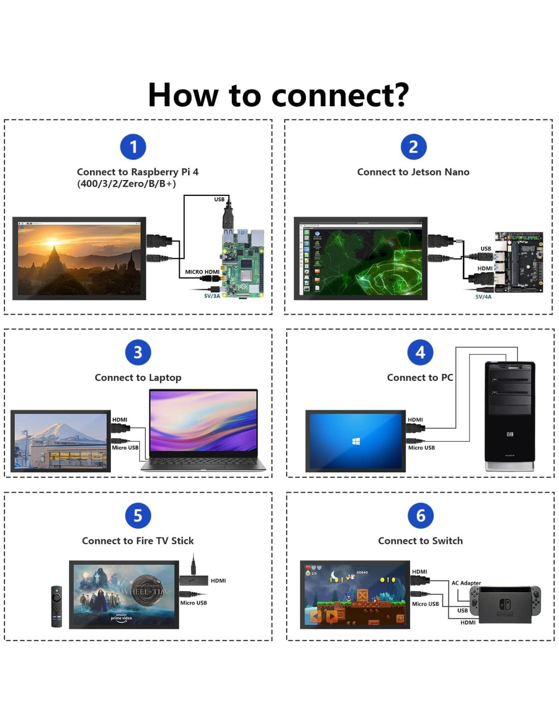 - [Mini Monitor Ampliamente Compatible] Compatible con Raspberry Pi 4/3/2/1 3B+ 3B 2B+, PC Windows 7/8/10/11, Fire TV Stick, consola de videojuegos como NS/XBOX/PS4. Otros dispositivos o sistemas como Retro Pi, NOOBS, Banana Pi, Jetson Nano, Debian, Ubuntu y Kodi son todos compatibles. También se puede montar dentro de la carcasa de tu PC como monitor de temperatura de computadora, etc.