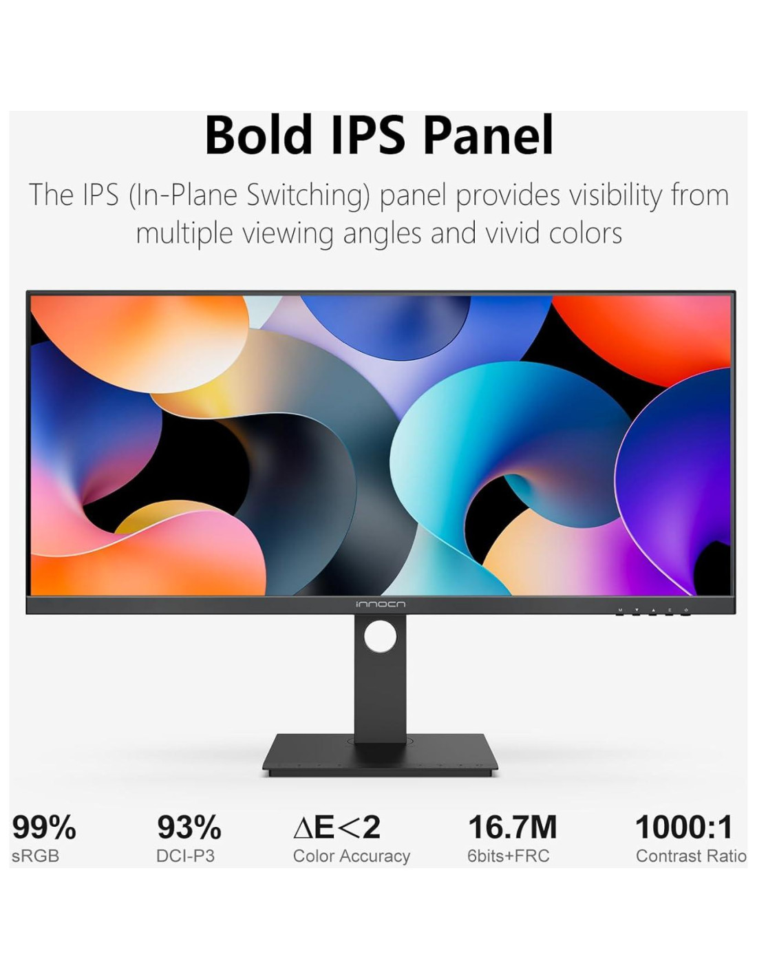 - Diseñado para creadores y profesionales: la pantalla ultrawide 21:9 revela un 33% más de espacio horizontal para líneas de tiempo y edición. La tasa de refresco de 100Hz reduce el desenfoque de movimiento, y USB-C 65W mantiene los dispositivos alimentados. El soporte ajustable se adapta a la ergonomía de cualquier espacio de trabajo