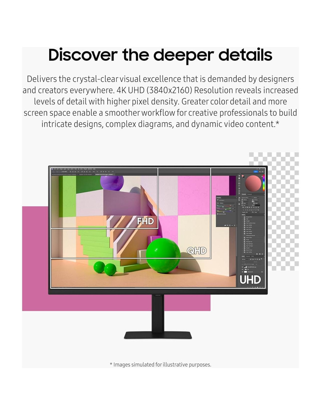 - DESCUBRE LOS DETALLES MÁS PROFUNDOS: La Resolución 4K UHD (3840x2160) revela un mayor detalle; Mayor detalle de color y más espacio en pantalla permiten un flujo de trabajo más fluido para profesionales creativos que construyen diseños intrincados, diagramas complejos y contenido de video dinámico.