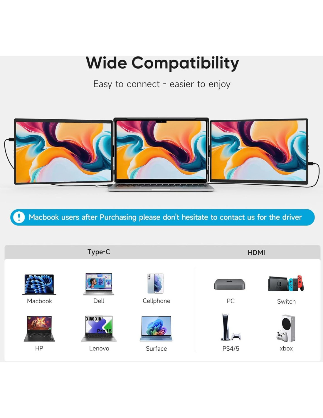 - [Amplia Compatibilidad] Nuestra pantalla portátil plug-and-play se adapta a laptops de 14" a 17.3". Compatible con una amplia gama de dispositivos tipo C o Thunderbolt 3/4 de funciones completas, incluyendo Windows, Mac, Chrome, Android, Dell, HP, PS4/5, Xbox, Switch, etc.