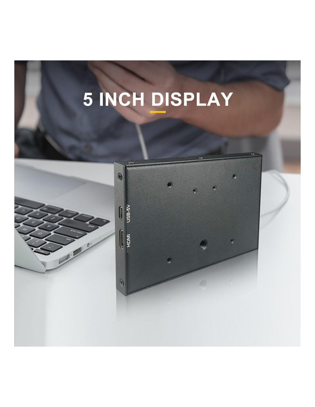 El monitor mini portátil LESOWN de 5 pulgadas es compacto y sofisticado con colores precisos y resolución IPS 800x480. Y se alimenta con microUSB a DC 5V-1A con pantalla HDMI.