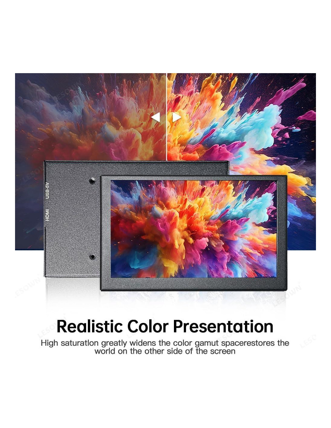 - [Excelente color con panel IPS HD] Con el panel IPS HD, el monitor portátil LESOWN de 5 pulgadas presenta un ángulo de visión completo horizontal y vertical de 178 y colores precisos, mostrando colores y contrastes más vívidos que los monitores VA y TN. La resolución HD es 800x480.