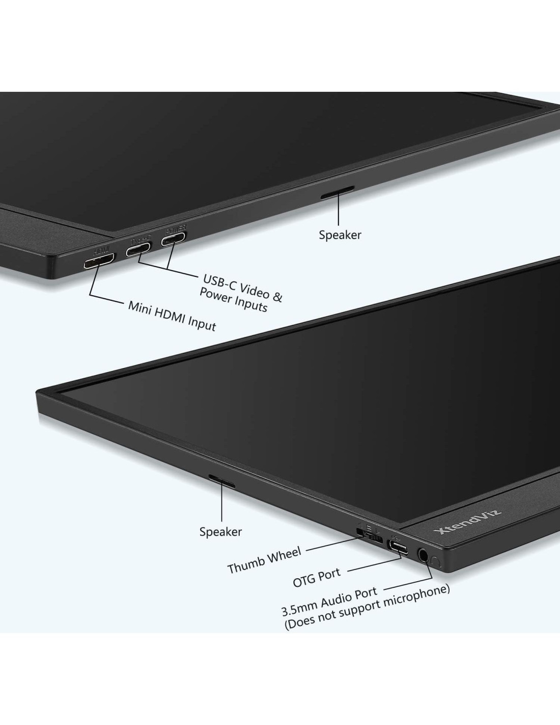 - [Portátil Delgado, Fácil de Llevar] La pantalla del monitor de juegos XtendViz XV1610F con un perfil delgado de 9.8mm y un peso de solo 0.81 kg (1.78 libras), ideal para su vida y trabajo para hacer una configuración simple sobre la marcha de presentaciones en doble monitor y móviles. Si tiene alguna pregunta o insatisfacción con nuestro monitor de viaje para laptop, no dude en contactar a nuestro servicio al cliente, le proporcionaremos una respuesta satisfactoria, este monitor portátil de 15.6 tiene una garantía de 18 meses.