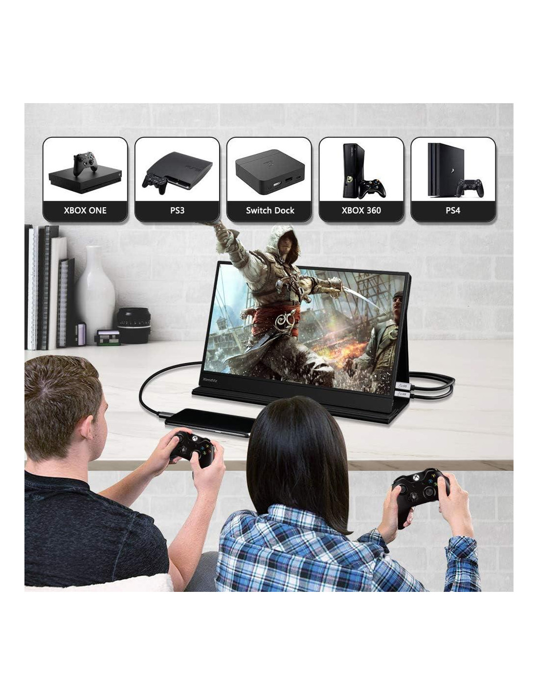 - [Conectividad Digital Versátil] El diseño de puertos Mini HDMI y USB C hace que esta pantalla de monitor de juegos portátil sea más conveniente para conectarse con su laptop, smartphone, PC, PS4, XBOX ONE o Switch, etc. Es ideal para extender su salida de pantalla o jugar durante viajes de negocios, viajes o entretenimiento en casa.
